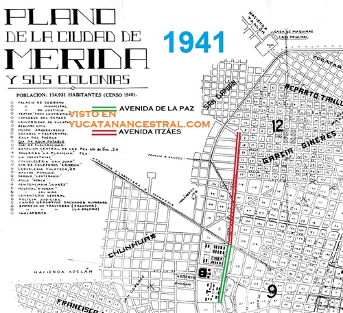 En este plano ya aparecen bien identificadas las avenidas Itzáes y de La Paz.