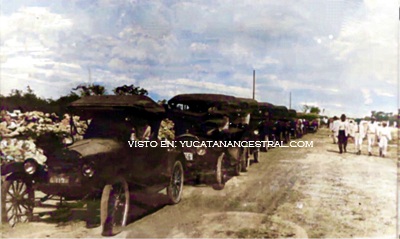 Inauguración de la Avenida de los Itzáes 1923. Se observa una de las columnas conmemorativas que aún existen en 2025.