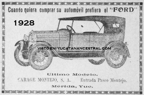 En aquel entonces, en 1916, las unidades Ford modelo «T» eran embarcadas directamente de Nueva York al puerto de Progreso. Venían totalmente armadas, listas para circular. En esa época no había comunicación por carretera al centro del país.